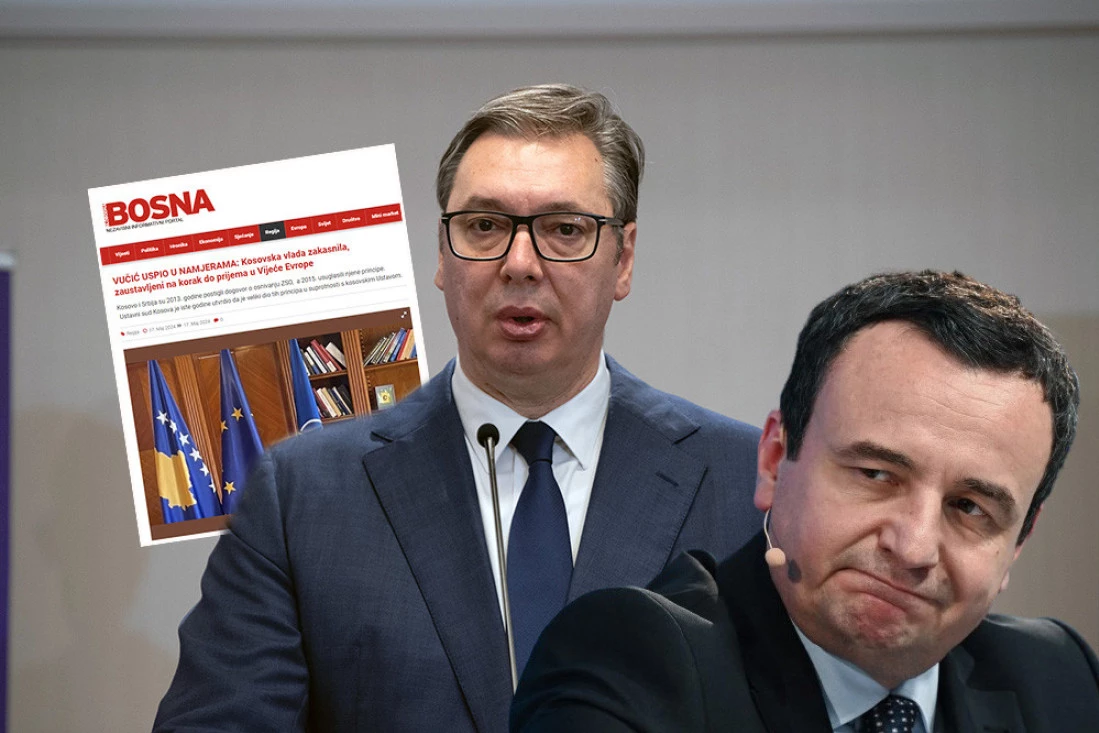 Na portalu Slobodna Bosna objavljen je članak pod naslovom "Vučić uspio u namjerama: Kosovska vlada zakasnila, zaustavljeni na korak do prijema u Savet Evrope - u kome se lamentira nad fijaskom lažnog premijera Aljbina Kurtija.