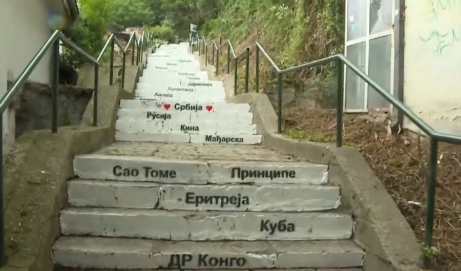 Zemunci poslali poruku u svet! Na poznatim stepenicama ispisana imena država koje nisu glasale za sramnu rezoluciju (FOTO)