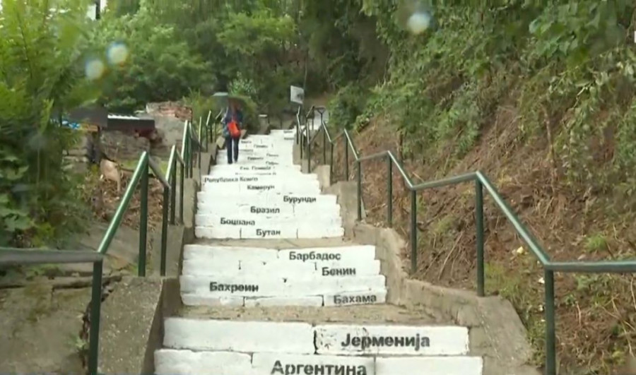 Na poznatim visokim stepenicama u Zemunu, ispisana su imena država koje su bile protiv i uzdržane prilikom glasanja o sramnoj rezoluciji o Srebrenici.