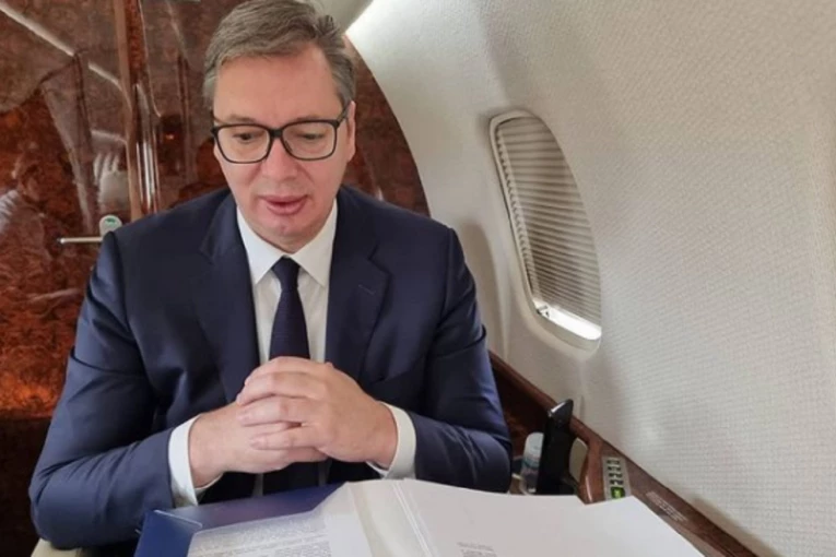 – U avionu, uvek, baš kao u studentskim danima, obnavljam gradivo i pripremam se za teške sastanke. Predaja nije opcija – naveo je Vučić.