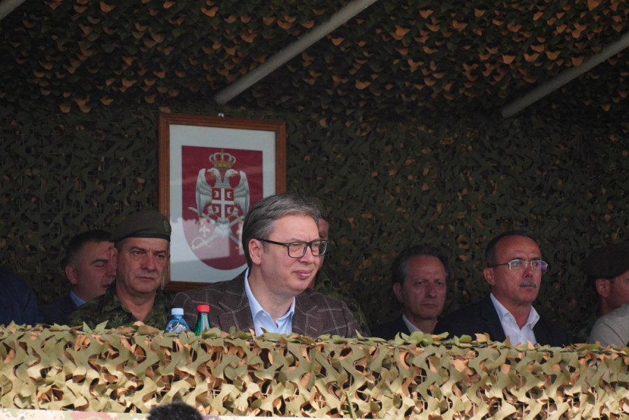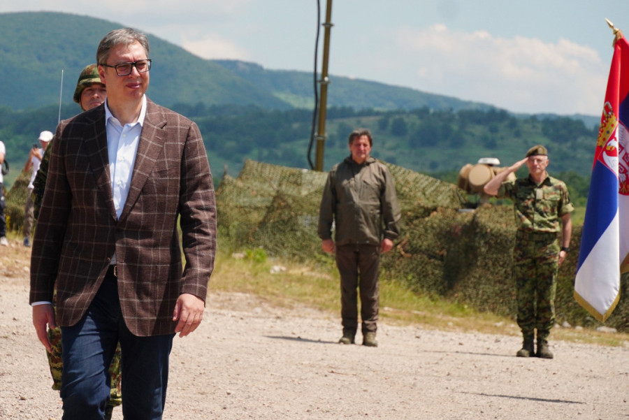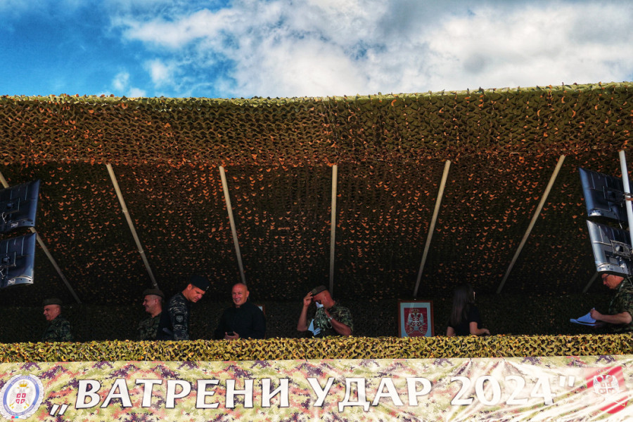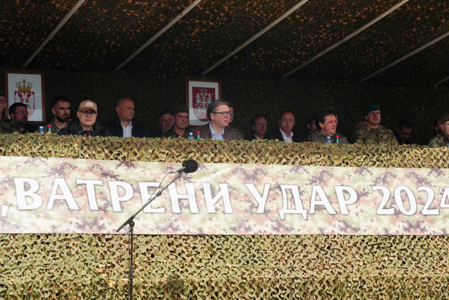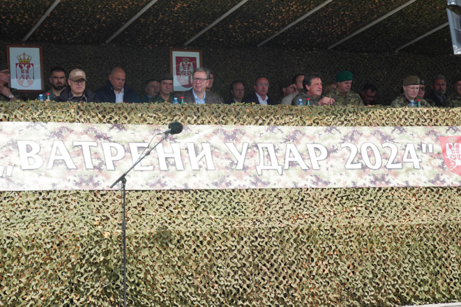 Predsednik Srbije Aleksandar Vučić prisustvovao je Danu visokih zvanica na opitnoj združenoj taktičkoj vežbi sa bojevim gađanjem - "Vatreni udar 2024", koja je održana u Vojnom kompleksu "Pasuljanske livade".