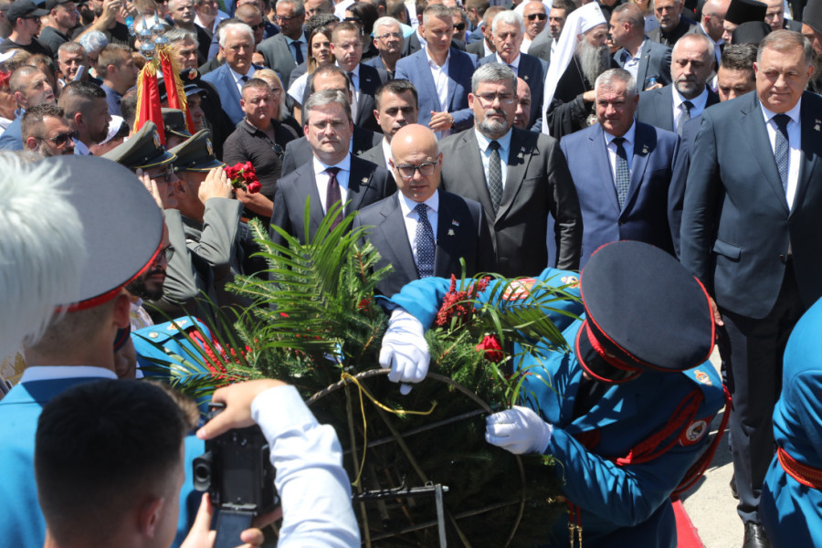 Pored Vučevića, vence su položili i predsednik Republike Srpske Milorad Dodik, ministar kulture Srbije Nikola Selaković, ministar za rad, boračka i socijalna pitanja Nemanja Starović, kao i članovi porodica stradalih Srba, predstavnici Boračke organizacije Republike Srpske, Saveza ratnih vojnih invalida Republike Srpske i drugih udruženja.