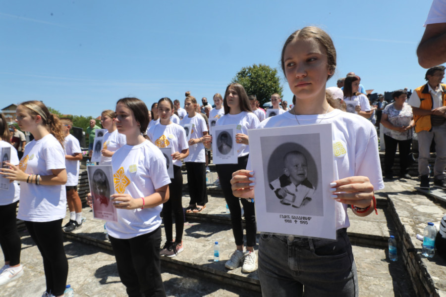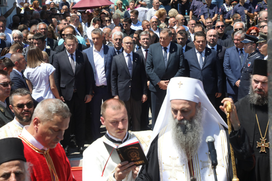 Prethodno je u hramu Uspenija Presvete održana liturgija koju je služio patrijarh srpski Porfirije. U Bratuncu se danas obeležava 32. godišnjica stradanja 3.267 Srba u Srednjem Podrinju.