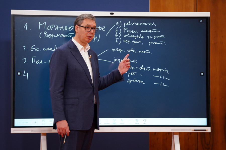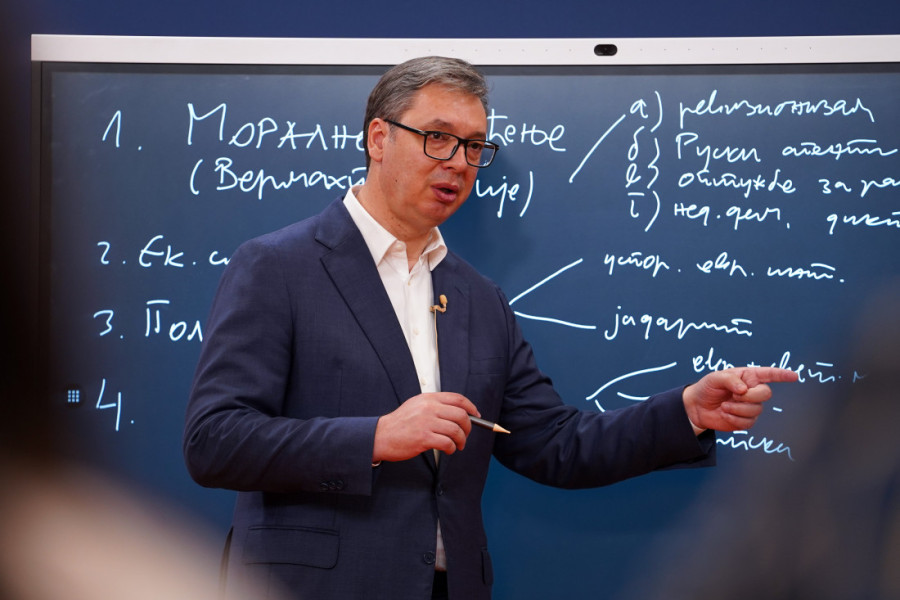- Sukobom na teritoriji Ukrajine iz 2022. godine, mnogi u našem okruženju su pokušali da iskoriste to za konačni udar na Srbiju. Srbija samo unižena, ekonomski razorena, politički iscepkana, teritorije otete i podeljene, može da bude dobrodošla Srbija. Pokazaću i zašto je to tako. Mi smo pre 24 sata pratili događaj iz Srebrenice i umesto da to bude prilika za reči pomirenje, poštovanja prema žrtvama, Srbija, njeni građani i srpski narod u celini, bili su izložini ne samo pogrdama i neistinama, već i najdirektnijim pretnjama - naveo je Vučić i dodao: