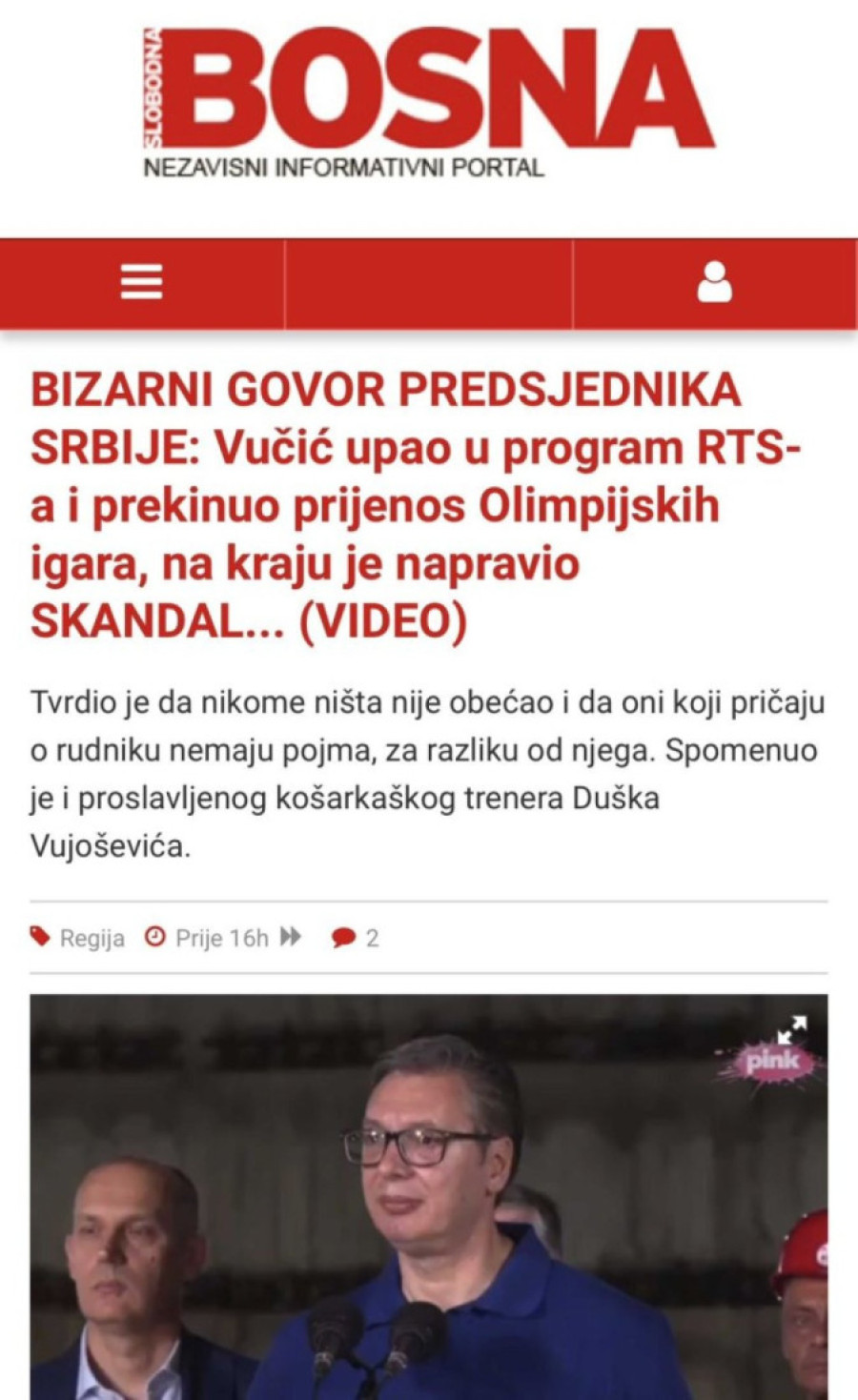 "Masovne demonstracije u Srbiji: Građani idu do kraja, Vučićeva vlast ima rok", "Ponoš razotkrio Vučićev tim stručnjaka: Kao da već nije dovoljno da je veterinar koji se tok karijere više bavio...", "Serija protesta protiv litijuma u Srbiji: Na nama je da branimo svoje mesto za život, jer država nas je izdala", "Bizarni govor predsednika Srbije: Vučić upao u program RTS i prekinuo prenos Olimpijskih igara, na kraju napravio skandal", "Ništa Vučića ne može uzdrmati kao litijum: Protesti zbog najave otvaranja rudnika večeras u četiri grada a ona u još 19" - ovako glase hejterski naslovi koje je u samo jednom danu protiv predsednika Srbije objavila "Slobodna Bosna".