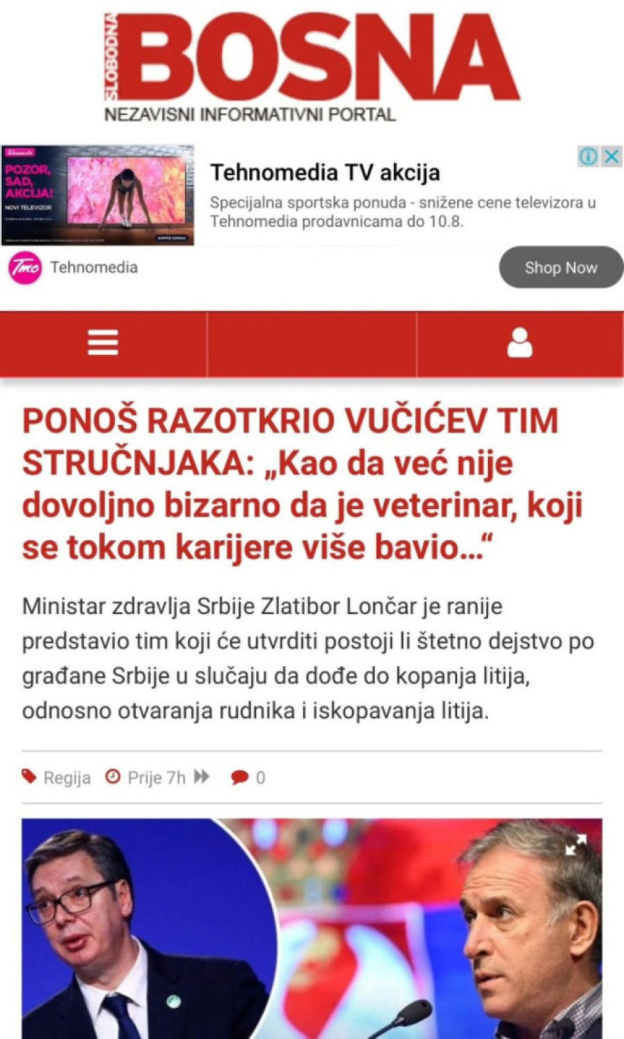 Islamistička "Slobodna Bosna" u žestokoj kampanji: Plaše se srpskog litijuma, pa lažima podržavaju opoziciju da sruši Vučića!