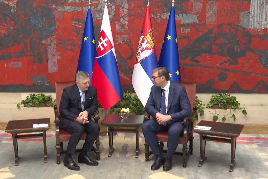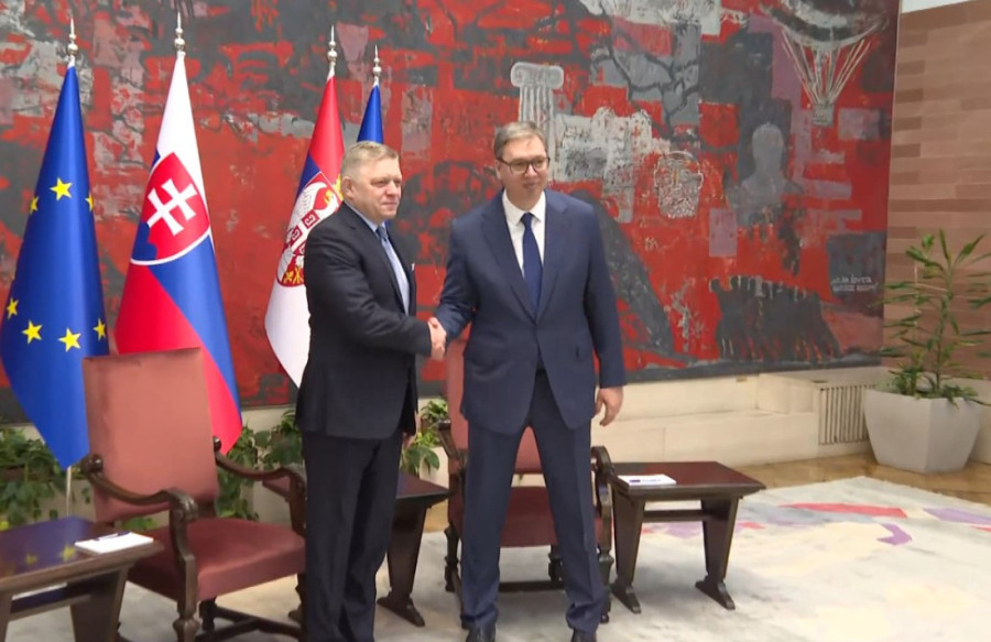 Predsednik Srbije Aleksandar Vučić i premijer Slovačke Robert Fico sastali su se danas u Palati Srbija. Posle tet-a-te sastanka uslediće uslediće sastanak delegacija dve zemlje koje će predvoditi Vučić i Fico.