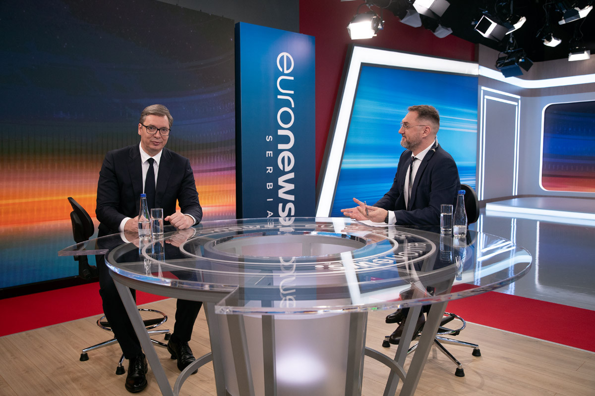 Predsednik Srbije Aleksandar Vučić gostuje u emisiji na televiziji “Juronjuz”.