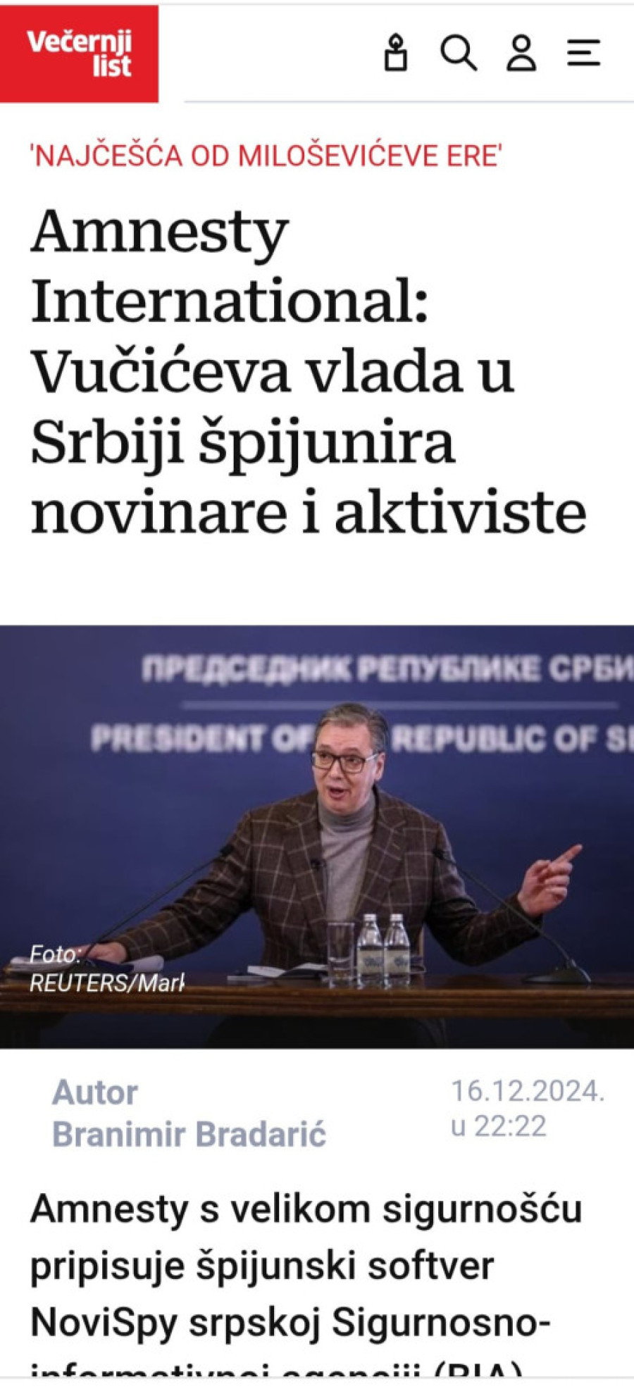 U tekstovima u kojima sami zaključuju, prenose kako oni čuju i ciljano biraju za naslovne fotografije uglavnom srpskog predsednika sa pognutom glavom, pokušavajući da isceniraju sliku kojoj će da se slade. Jaka Srbija nikome ne odgovara. Svi bi Srbiju na kolena, srpski narod da potčine, da nas ismevaju.