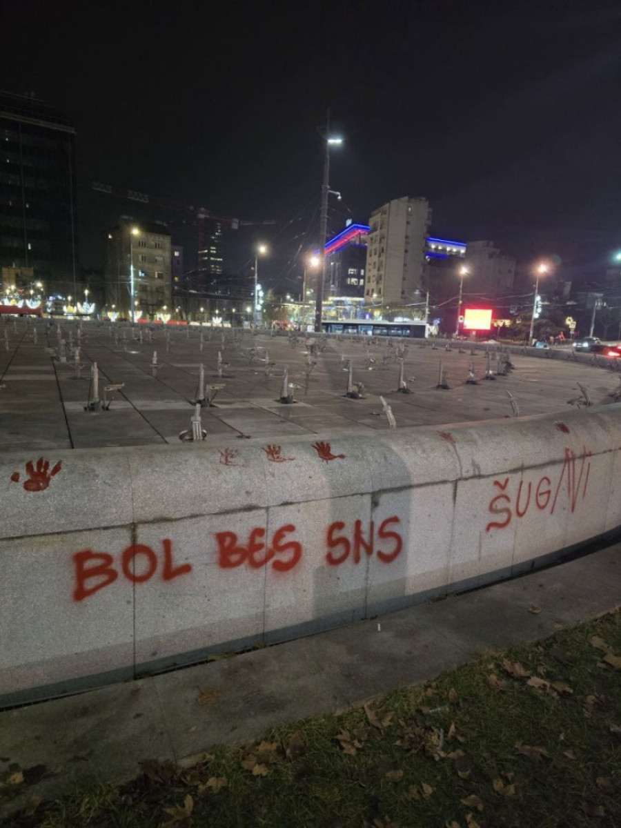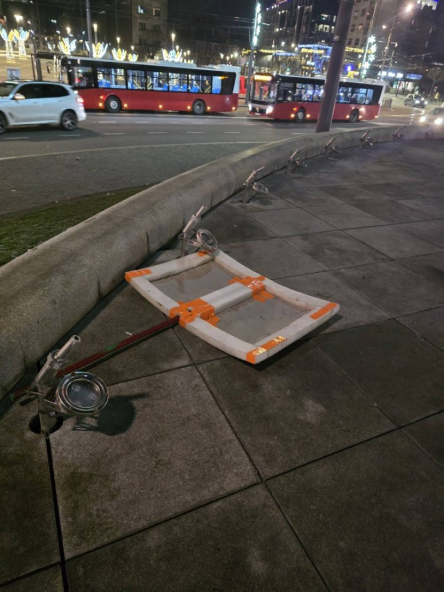 Ekstremisti demolirali fontanu na Slaviji nakon protesta! Ukradeni reflektori, polomljene ploče (FOTO)