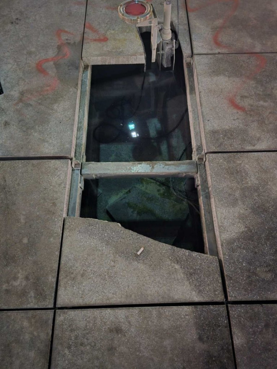 S obzirom da unutrašnjost fontane nije predviđena niti projektovana, tako da se može u istu ulaziti, moglo je da dođe do ozbiljne nesreće i propadanja ljudi u fontanu. Tom prilikom polomljen je veći broj ploča na samoj fontani - ukradeno je pet, a polomljeno 11 reflektora, dok je veliki broj mlaznica i senzora uništen.