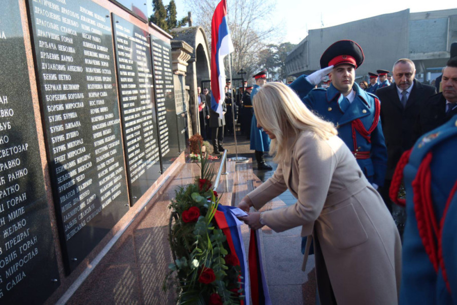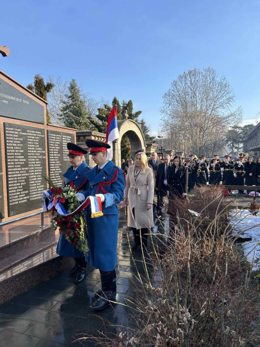 Obeležavanje je započeto polaganjem venaca na Spomenik palim borcima Srpske