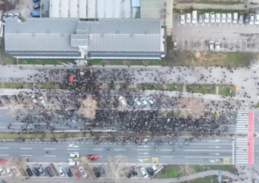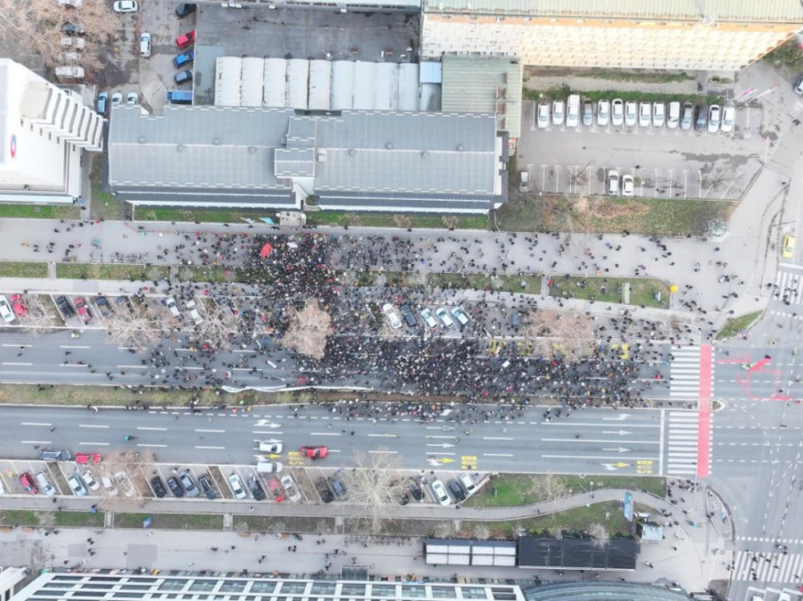 Koliko je bilo "studenata" koji su juče protestovali ispred zgrade Bezbednosno-informativne agencije u Novom Sadu dokazuju i pokazuju i fotografije iz drona.