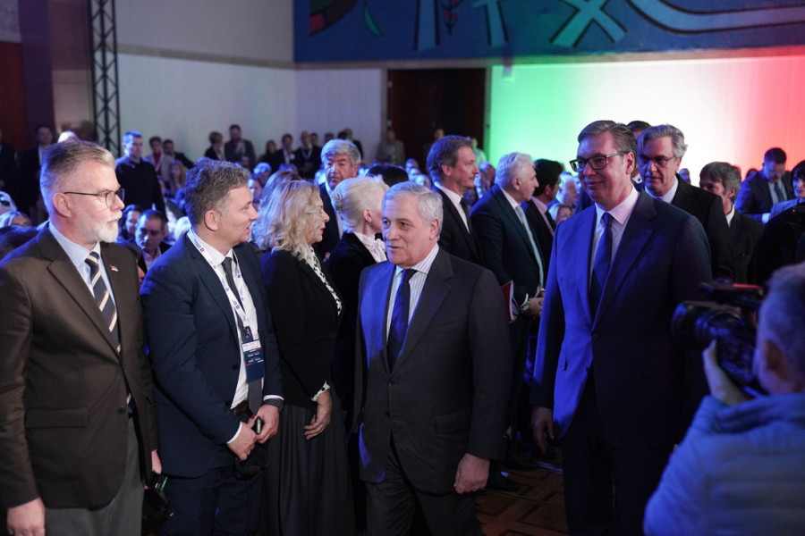 Predsednik Srbije Aleksandar Vučić i ministar spoljnih poslova Italije Antonio Tajani obratili su se na Poslovnom forumu Srbija-Italija, koji organizuje Privredna komora Srbije uz podršku Ambasade Italije i italijanske Agencije za trgovinu (ITA).