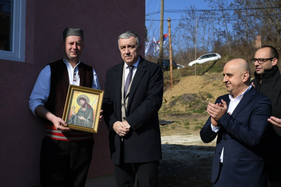Elek je porodici Vlajović uručio ikonu Svetog Jovana i poželeo im puno sreće, zdravlja i proširenje porodice. Domaćin porodice Nikola Vlajović zahvalio se državi Srbiji i istakao da je ova pomoć znak da Srbija misli na svoj narod na Kosovu i Metohiji.