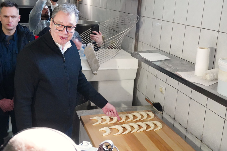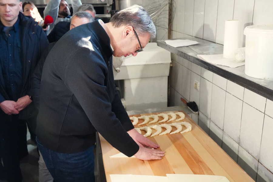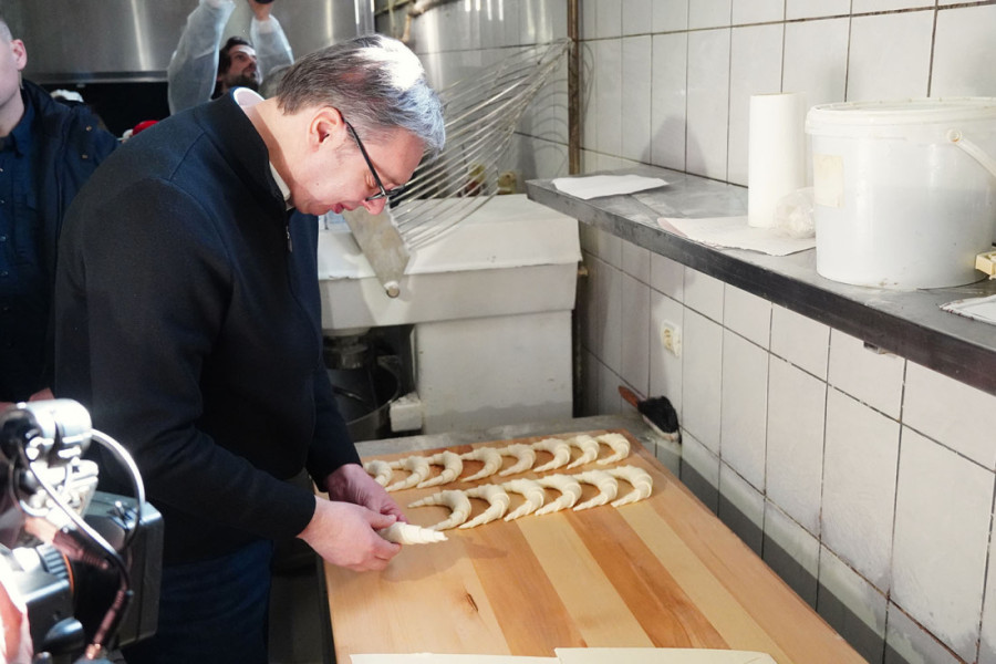 Tokom obilaska proizvodnje predsednik je probao da napravi kiflu.