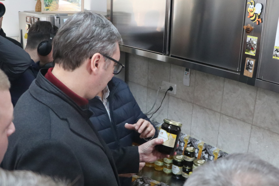 - Znači 25.000 evra možete da dobijete od države - istakao je Vučić, a ministarka Mesarović je navela da će uzorci meda iz domaćinstva koje su danas posetili biti diplomatskom poštom poslati za Kinu, kako bi im se pomoglo u plasmanu.