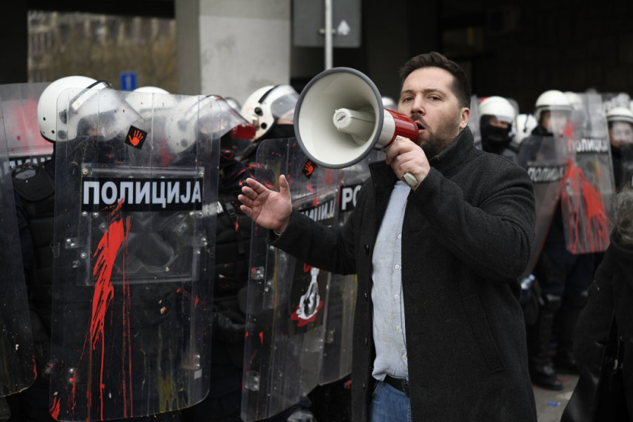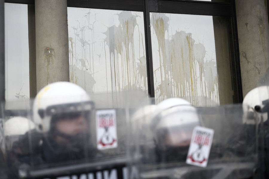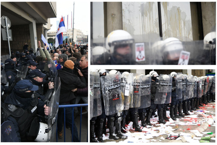 Prethodno su učesnici protesta probili kordon policije koja je obezbeđivala zgradu i došli do samog ulaza.