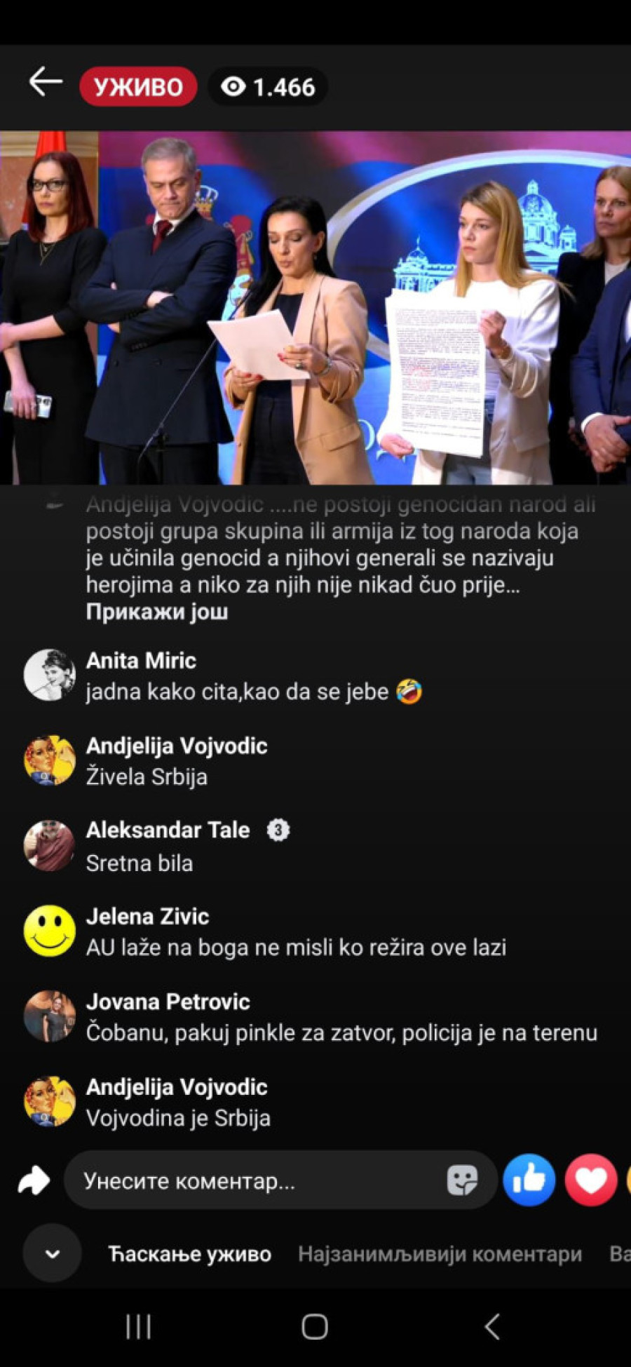 Dok je pokušavala da održi svoj propagandni nastup, građani su je zasuli komentarima koji su joj pokazali pravu sliku - narod je ogorčen, razočaran i ne želi da sluša laži političke "elite" koja je opljačkala Srbiju! Komentari su pljuštali jedan za drugim, razotkrivajući njeno licemerje i dvoličnost.