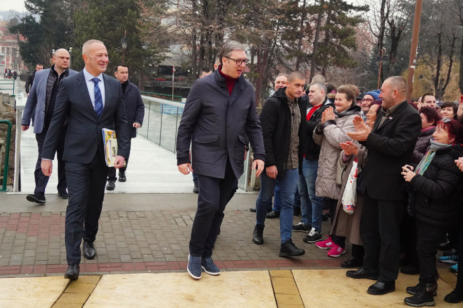 - Da nam cela Srbija raste, veće plate i penzije. Prva dva meseca nisu bila sjajna ove godine i zbog blokada i svega što su radili na uništenju naše zemlje. Veurjem da ćemo i to da rešimo, da vratimo zemlju na pravi put, da se naučimo kaok da poštujemo i profesore i nastavnike. Ono što ste mogli da vidite u beogradskim gimnazijama, verujem da se zbiva i ovde, a to je nedopustivo. Pobedićemo sve to zajednički. Beskrajno vam hvala što vas je ovoliko. Hvlaa na svemu, sad sam došao da čujem vas i da vidim možemo li da pomognemo nešto.