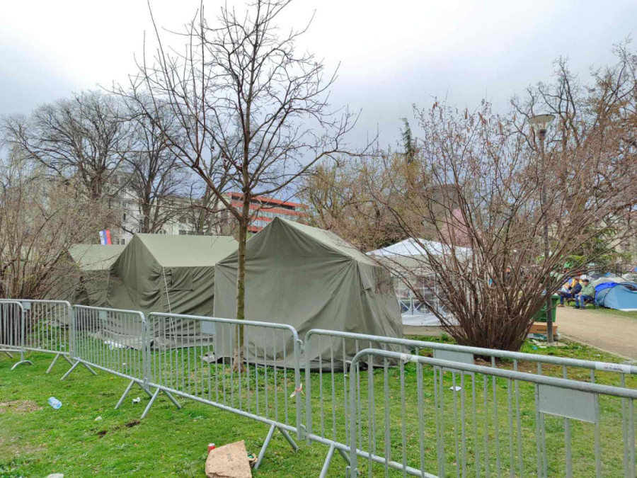 Rano jutros Beograđani su zatekli kordon traktora koji je okružio Pionirski park u kome kampuju studenti koji hoće da uče.