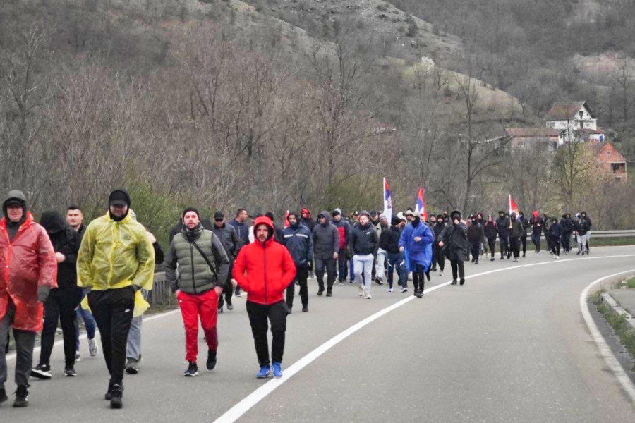 Oko 200 Srba iz svih krajeva AP Kosova i Metohije koji su krenuli juče pešice ka Beogradu, kako bi u subotu 12. aprila stigli na veliki narodni skup koji se održava u srpskoj prestonici, stigli su sinoć do mesta Ušće u Kraljevu.