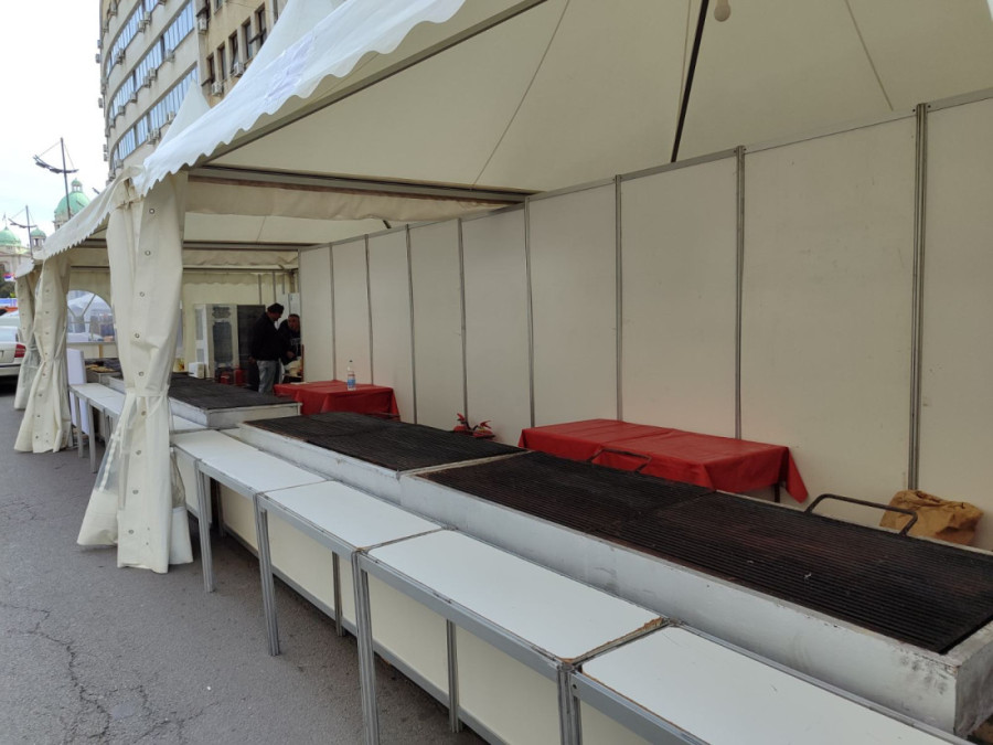 Kako javlja reporter 24sedam, štandovi i šatori su postavljeni od Pravnog fakulteta do Trga Nikole Pašića. Na terenu su radnici koji sklapaju štandove. Pale se roštilji, a tu su i štandovi s vodom.