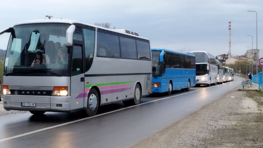 Nepregledne kolone autobusa i automobila od jutros su na administrativnim prelazima Jarinje i Merdare iz pravca KiM ka centralnoj Srbiji. Veliki broj autobusa sa KiM - iz severnog dela Kosovske Mitrovice, Zvečana, Leposavića, Gračanice, Štrpca i ostalih srpskih sredina krenuo je jutros ka Beogradu, a veliki broj građana na svenarodni skup uputio se sopstvenim prevozom.