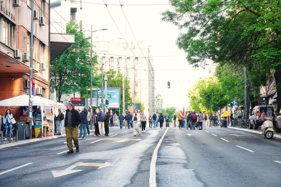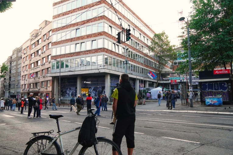 I dalje je kontejnerima blokirana raskrsnica Takovske i Svetogorske, kao i raskrsnica Svetogorske i Ilije Garašanina, a kontejneri su postavljeni i u Takovskoj ulici kod zgrade RTS-a i kod Glavne pošte.