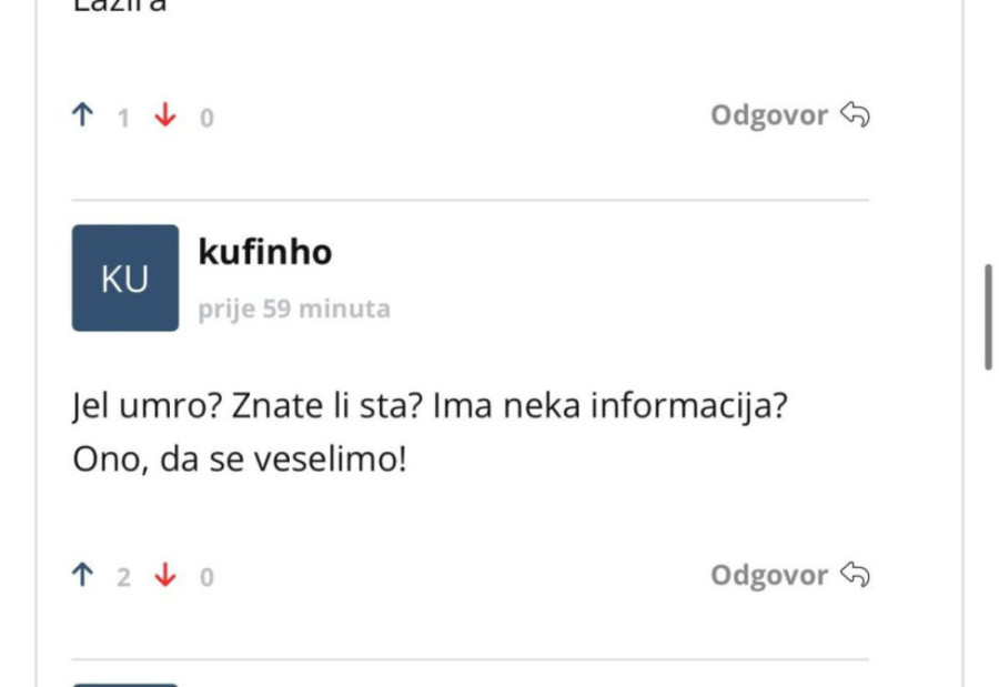 "Napokon dobre vijesti iz Srbije", "je l' umro? Da se veselimo" i "crko dabogda" bili su samo neki od komentara na hrvatskim portalima.