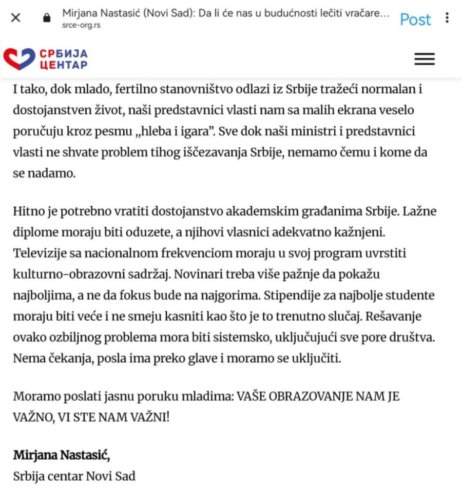 U spektakularnoj akciji policije sprovedenoj 6. maja 2025. godine u Novom Sadu, uhapšena je Mirjana Nastasić, istaknuta aktivistkinja i koordinatorka Pokreta "Srbija Centar - SRCE"!