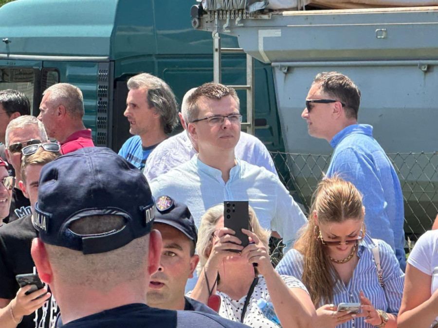 Među okupljenima su i predstavnici opozicije Radomir Lazović i Miloš Parandilović.
