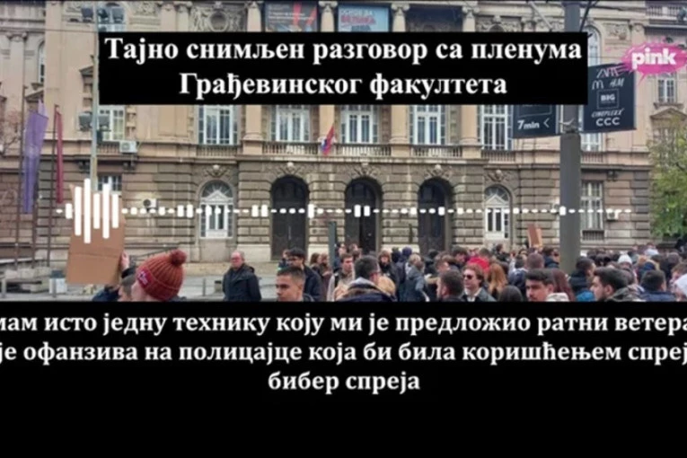 - Malo se vrtimo u krug. Nemamo još ceo plan, videćemo da li ćemo da idemo na RTS, šta ćemo 28. Ofanziva na policiju, po predlogu ratnog veterana, mislim da je neophodno da narod krene u napad. Mislim da je to cela poenta, mi smo studenti bili simbol kao borimo se za pravdu, do sada. Mislim da je potrebno da narod spontano krene u neki vid nasilja, znači mi ćemo da pozovemo na građansku neposlušnost - čulo se na sastanku, ali nije precizirano ko je prisustvovao plenumu.