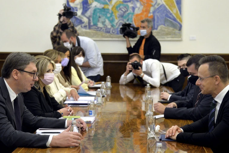 Predsednik Srbije Aleksandar Vučić sastao se danas sa ministrom spoljnih poslova Mađarske Peterom Sijartom, sa kojim je razgovarao o daljem unapređenju bilateralne saradnje, evropskom putu Srbije, borbi na suzbijanju pandemije, tranzitnim kapacitetima, snabdevanju i korišćenju gasa, kao i strateškom partnerstvu dve zemlje u brojnim oblastima, saopštila je Služba za saradnju sa medijima Predsednika.