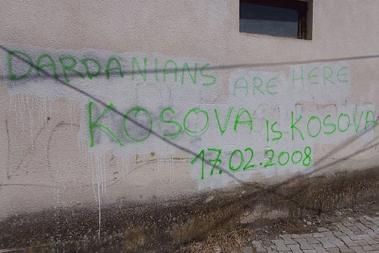 Na zidu kuće koja se nalazi preko puta vrtića, u koji deca idu svakodnevno, napisana je poruka na engleskom “Big Albania”, kao i poruka “Кosovo is Кosovo 17.02.2008”.