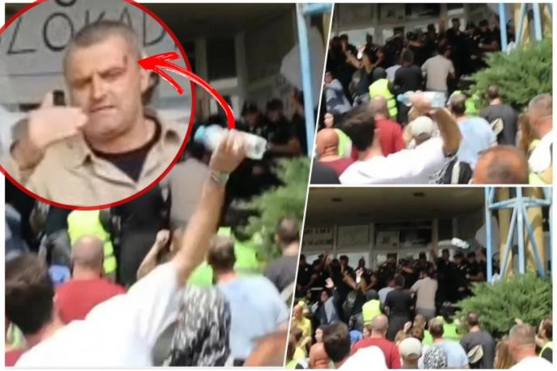 Nasilje ispred DUNP-a: Načelnik policije pogođen flašom u glavu dok je pokušavao da smiri besne blokadere! (FOTO/VIDEO)