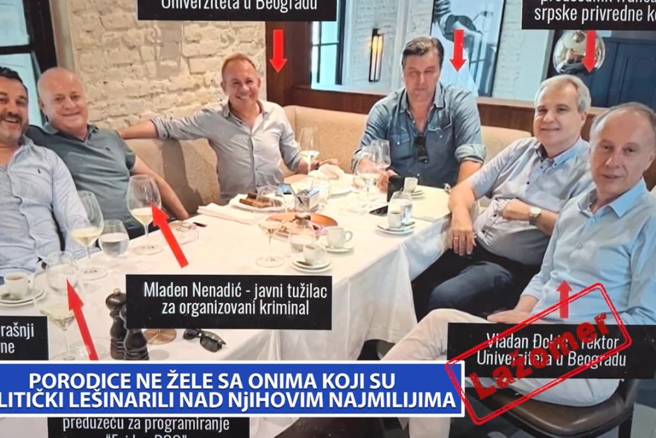 Porodice stradalih su se, bezbroj puta, jasno ogradile od blokadera koji su ovu strašnu tragediju zloupotrebili u lične i političke svrhe. Još bolnije od toga je činjenica da se te iste porodice ograđuju i od onih koji su direktno ili indirektno odgovorni za pad nadstrešnice – a koji se danas bez trunke stida fotografišu sa rektorom Vladanom Đokićem i glavnim tužiocem Mladenom Nenadićem, organizatorima obojene revolucije, državnog udara i anarhije na ulicama Srbije.