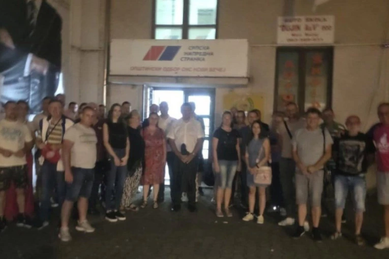 Građani koji podržavaju SNS došli su u centar Novog Bečeja kako bi sprečili pokušaje blokade prostorija stranke i očuvali red.