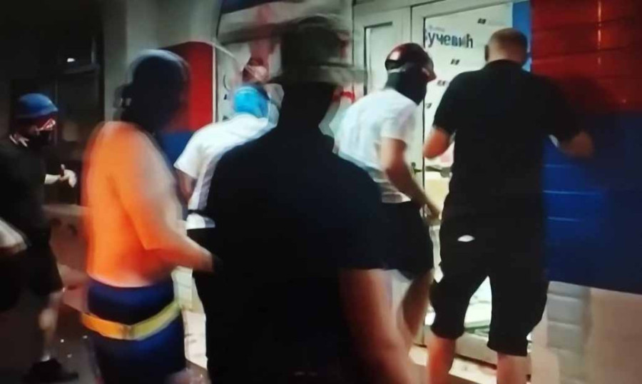 Grupa od oko 200 maskiranih blokadera, opremljena palicama i motkama, uputila se prema prostorijama Srpske napredne stranke u Novom Sadu i devastirala ih - razbijena su stakla i prozori korišćenjem improvizovanih alata poput metalnog stola.