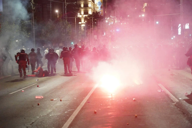 Bacaju molotovljeve koktele, pirotehnika, kamenice.
