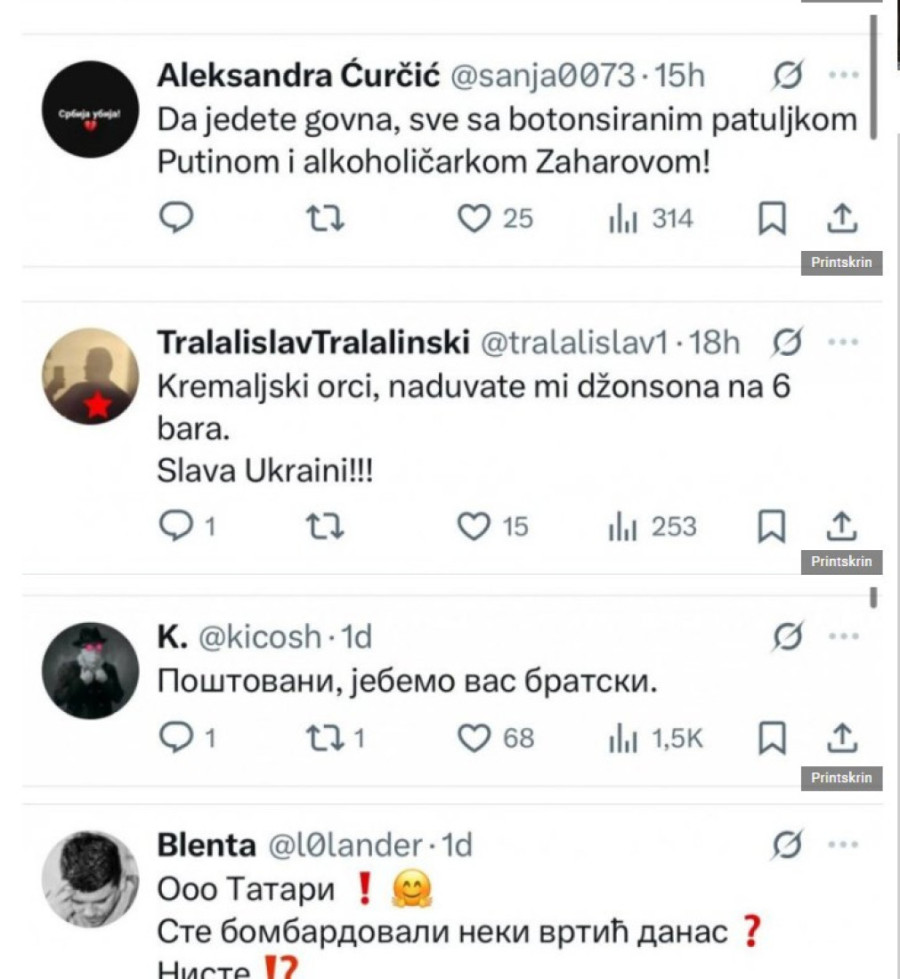 Pogledajte komentare i izlive mržnje blokadera prema Rusiji, a sve zbog istine koju je rekla zvanična Moskva.