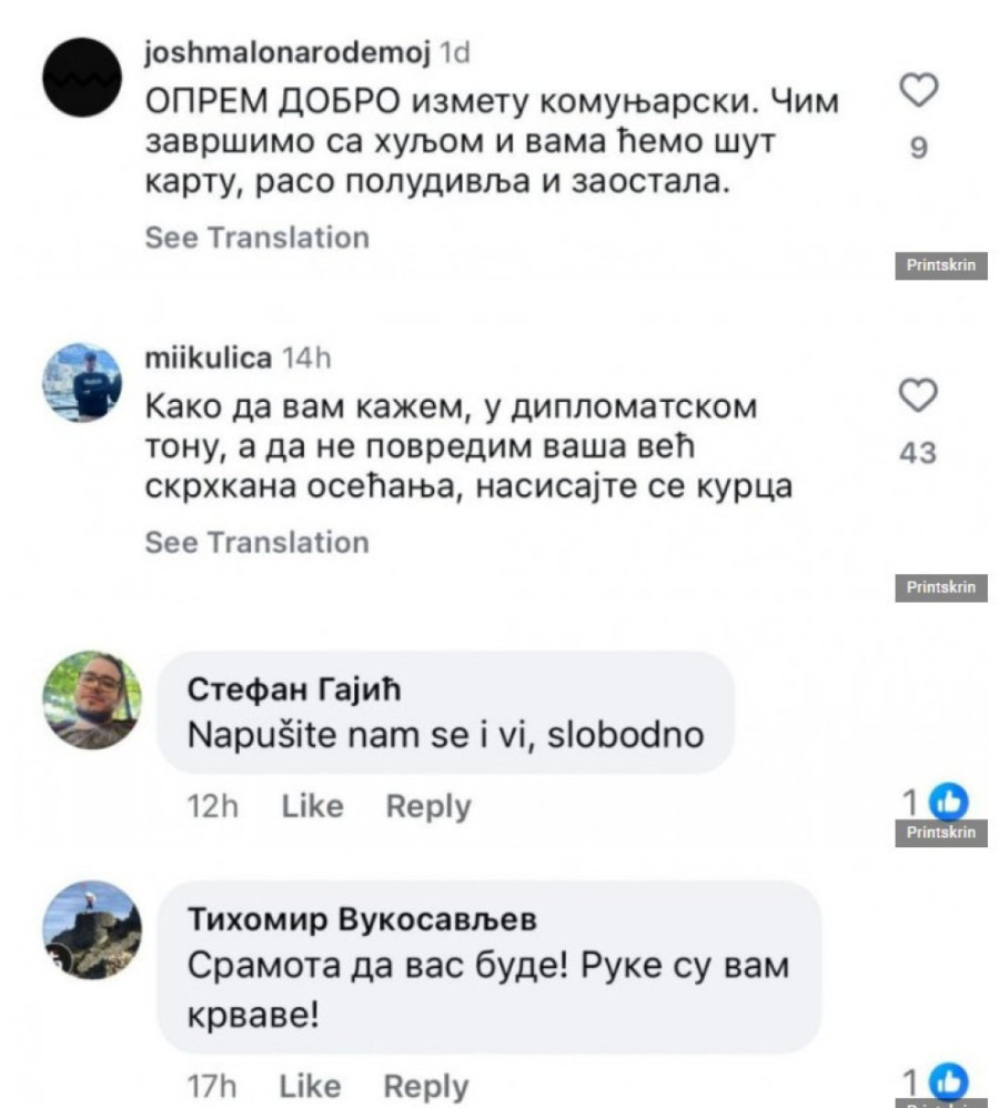 Ovo saopšenje objavljeno je na Instagramu,a blokaderi su u komentarima ispod objave društvenim mrežama, pokazali koliko mrze Rusiju.