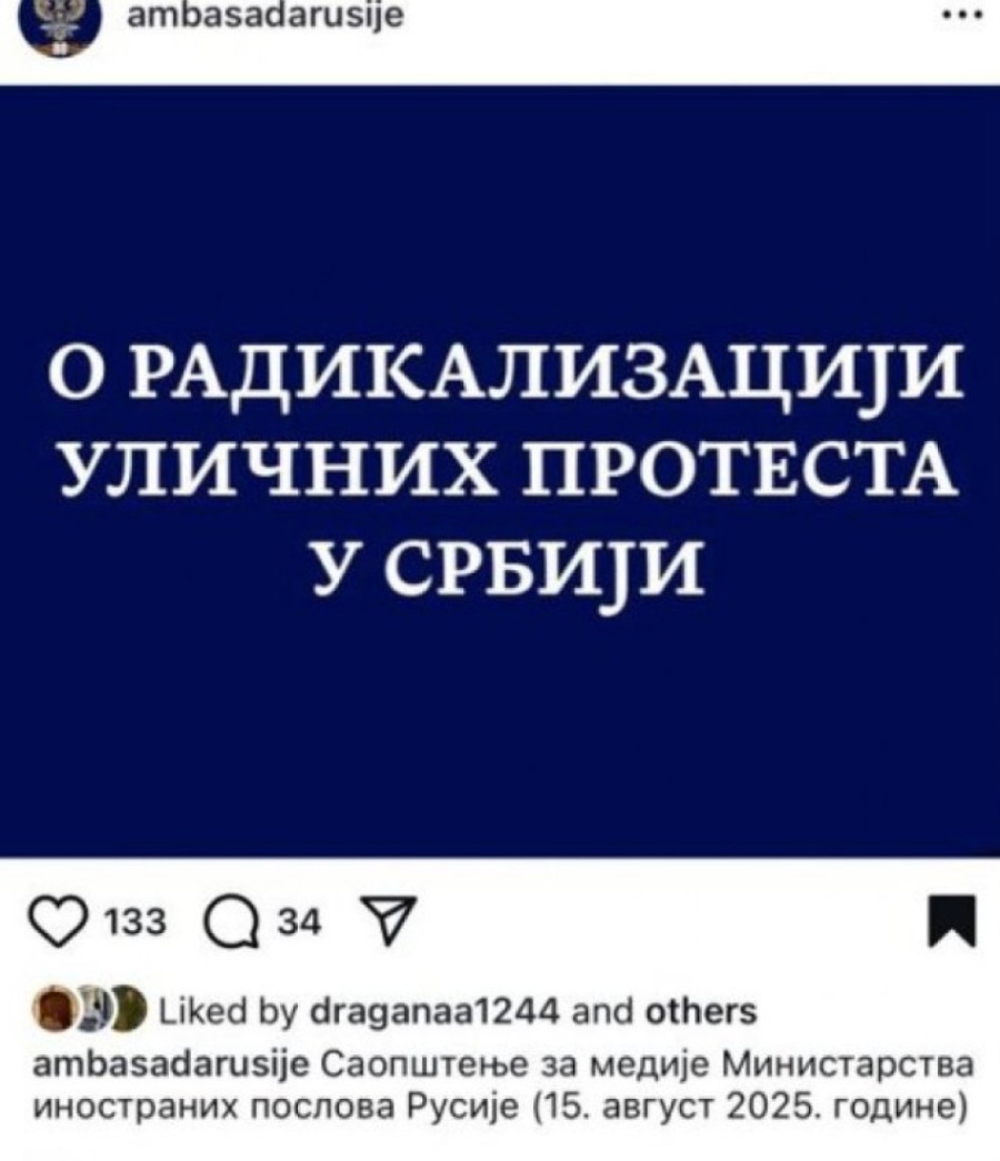 Blokaderi siledžije izlili su najstrašniji oblik mržnje prema Rusiji, a sve zbog saopštenje ruskog Ministarstva spoljnih poslova u kome navode šta se dešava na ulicama Srbije.