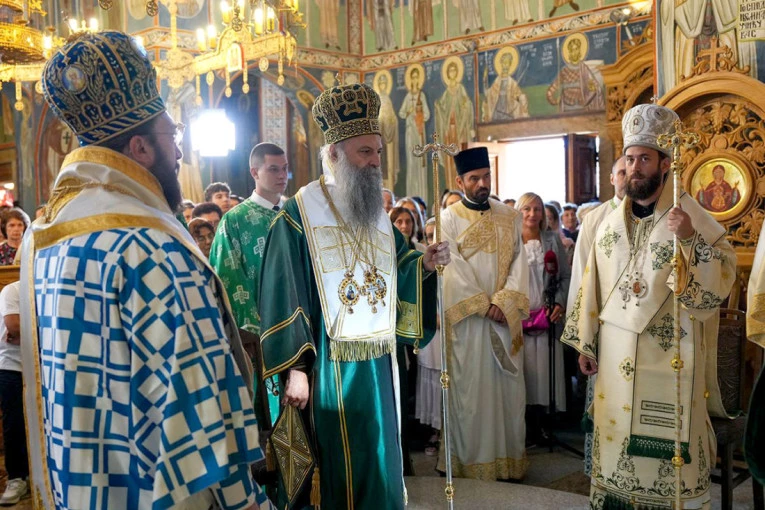 Predstojatelj SPC je načalstvovao liturgijom, a sasluživali su episkopi londonski i velikobritansko-irski Nektarije i vikarni toplički Petar, protonamesnik Goran Mišanović, arhijerejski namesnik beogradsko-posavski, protojerej Aleksandar Petrović, starešina crkve Preobraženja Gospodnjeg na Vidikovcu, protojerej-stavrofor Slavko Božić, penzionisani paroh čukarički, protonamesnik Aleksandar Milutinović, sveštenik Goran Mijailović, koga je patrijarh danas odlikovao činom protojereja, jereji Emil Milovanović i Bojan Božić, protođakoni Dragan Radić, Radomir Vrućinić i Damjan Božić i đakon Vasilije Perić, saopštila je SPC.
