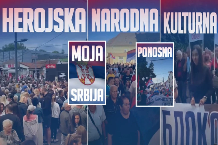 Uz kadrove sa masovnih skupova građana koji se protive blokadama, vidi se Srbija kakvu svi žele - ponosna, uspešna, sigurna, poštovana nezavisna, radna, suverena, poštena, stabilna, narodna, napredna, povezana, zdrava, kulturna, herojska, složna.