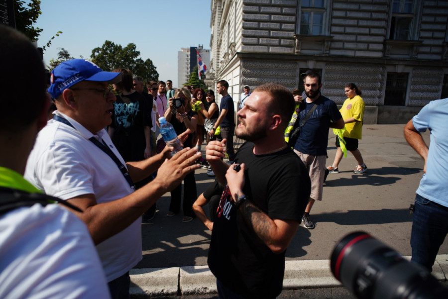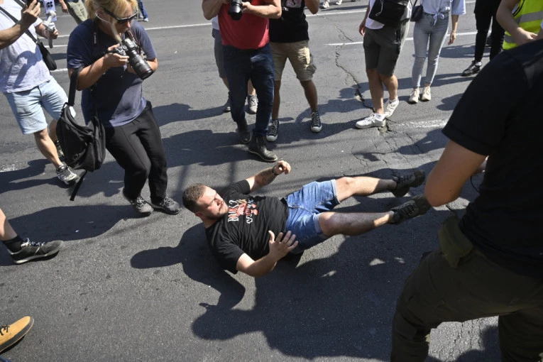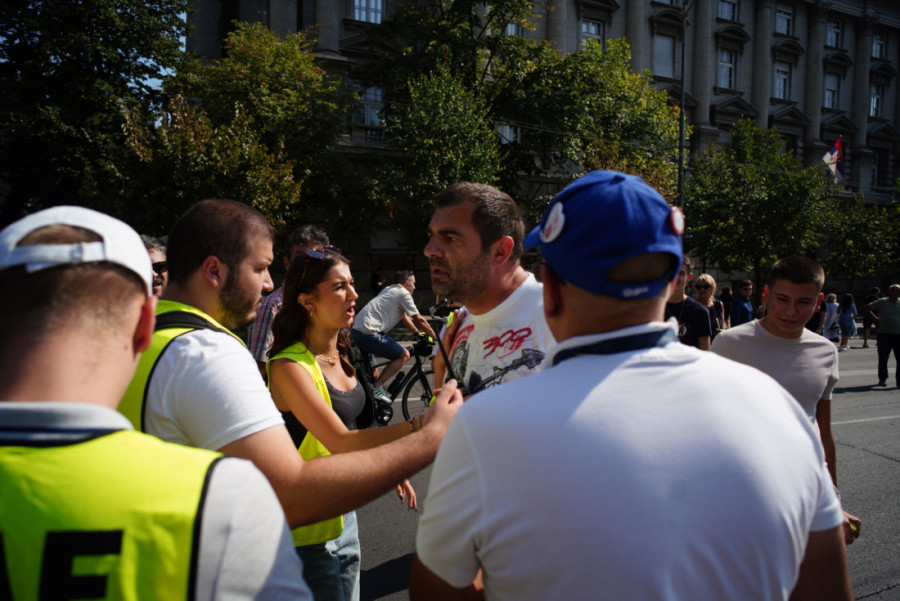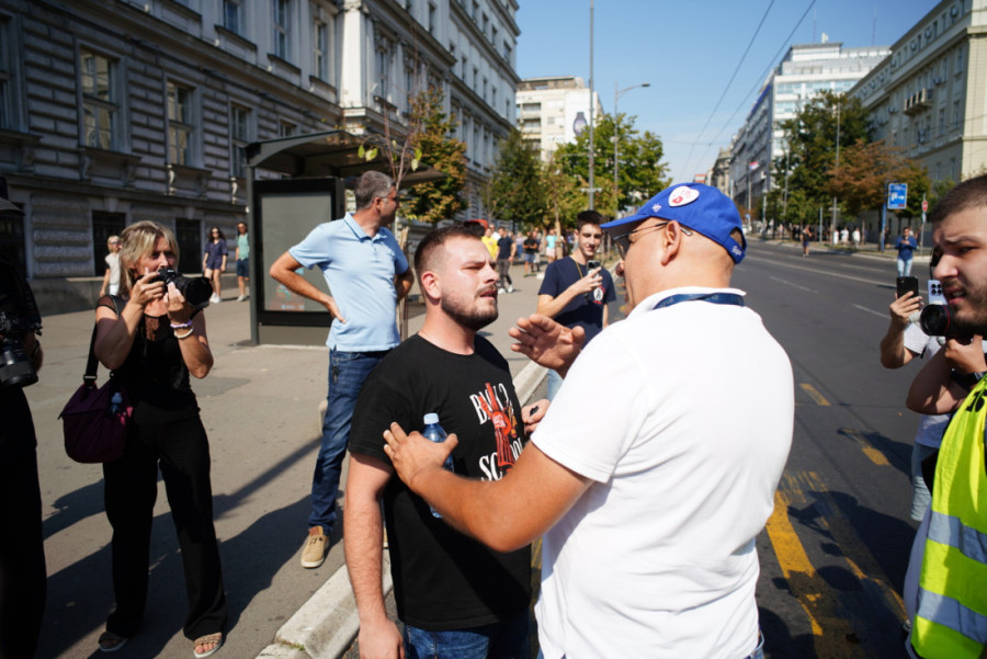Naime, on je mirno šetao raskrsnicom Nemanjine i Kneza Miloša kada ga je masa muškaraca opkolila i počela besomučno da ga vređa i da mu preti. Zanimljivo je da je među "mirnim studentima" koji su se istakli u pretnjama najviše bilo nasilnih muškaraca, kao i onih sumnjivog ponašanja koji su Tiktokera gurali, saplitali ga i bukvalno fizički izgurivali sa svog skupa.