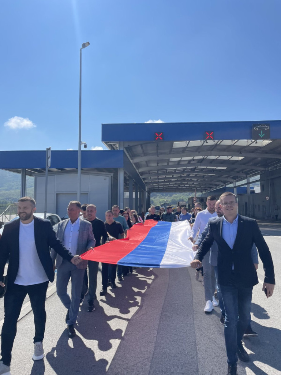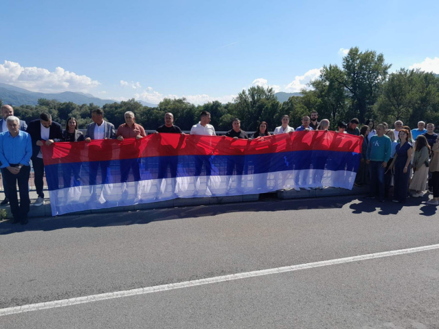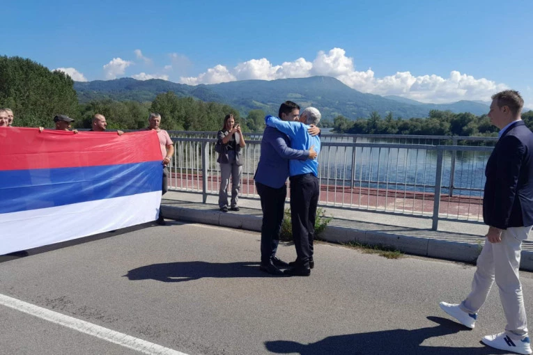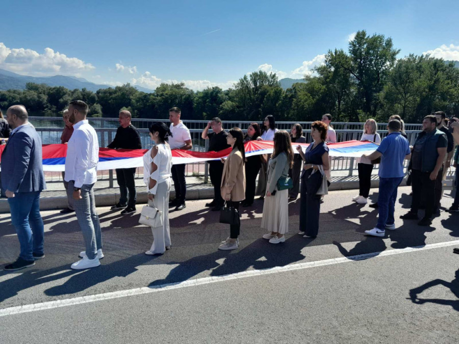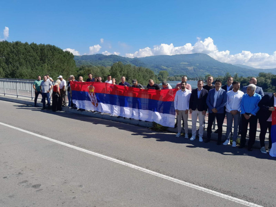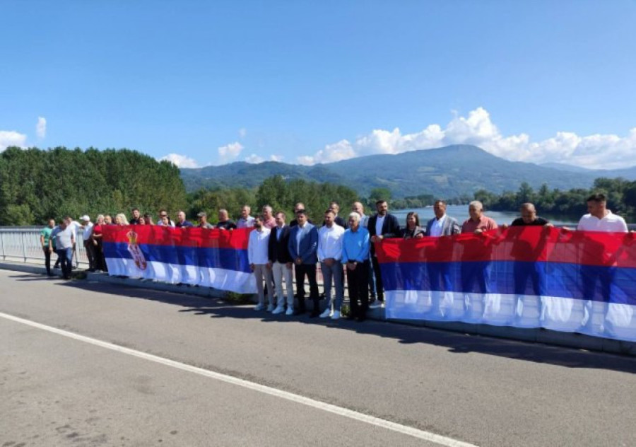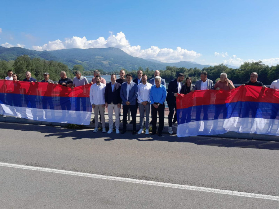 Građani i rukovodstva opština Bratunac i Ljubovija u Srpskoj i Srbiji na mostu Bratoljub spojili simbolično zastave povodom današnjeg zajedničkog praznika Srpske i Srbije - Dana srpskog jedinstva, slobode i nacionalne zastave.