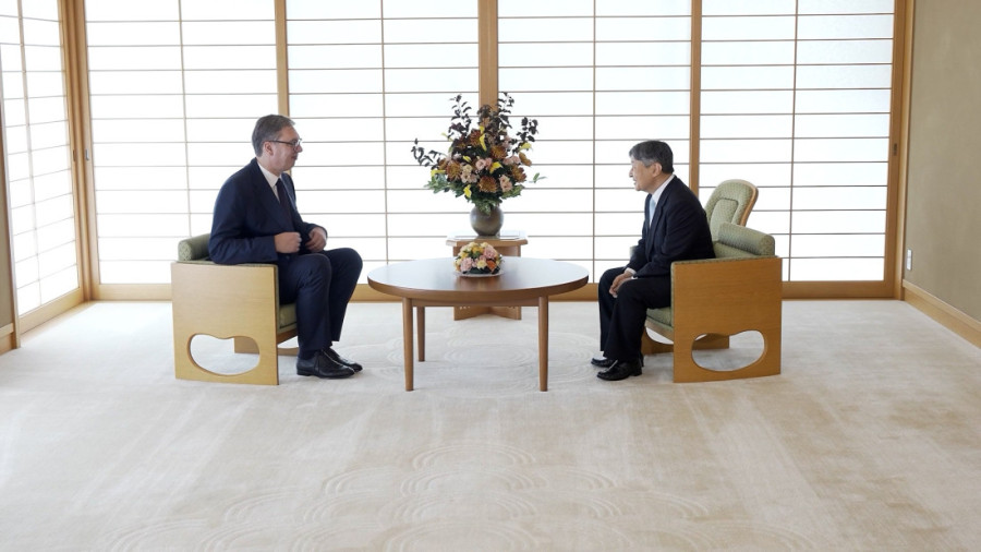 Ovo je prvi zvanični susret predsednika Vučića i cara Naruhuta, a predsednik Vučić kasnije će se sastati i sa predsednikom Vlade Japana Šigeru Išibom.