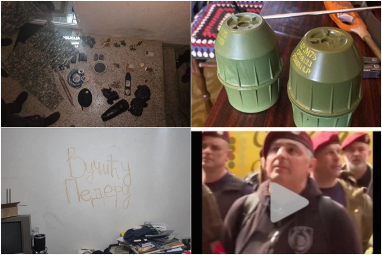 Takođe, policija je na zidu zatekla ispisanu uvredljivu poruku za predsednika Srbije Aleksandra Vučića.