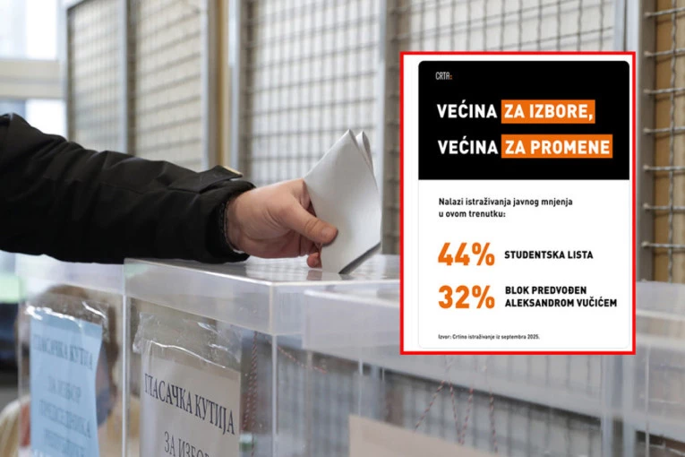 Nevladina organizacija CRTA objavila je novo istraživanje koje više liči na političku manipulaciju nego na ozbiljnu analizu javnog mnjenja. Prema CRTI, studentska lista trenutno uživa 44 odsto podrške, dok je blok okupljen oko Aleksandra Vučića navodno pao na 32 procenta. Ostatak? Nema ga nigde!